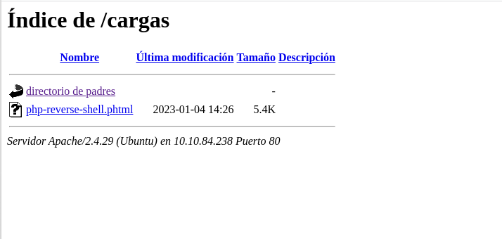 Si nos movemos a la URL http://10.10.84.238/uploads veremos lo siguiente: